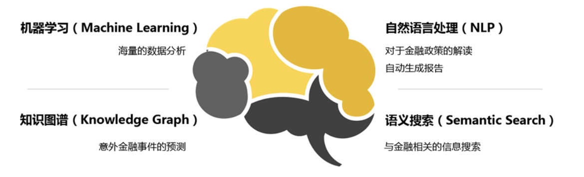 人工智能已经能够贯穿于金融活动的整个业务过程当中,包括海量的数据分析、对于金融政策的解读、自动生成报告、意外金融事件的预测以及与金融相关的信息搜索,与这些业务过程相对应的人工智能技术如图 1 所示。