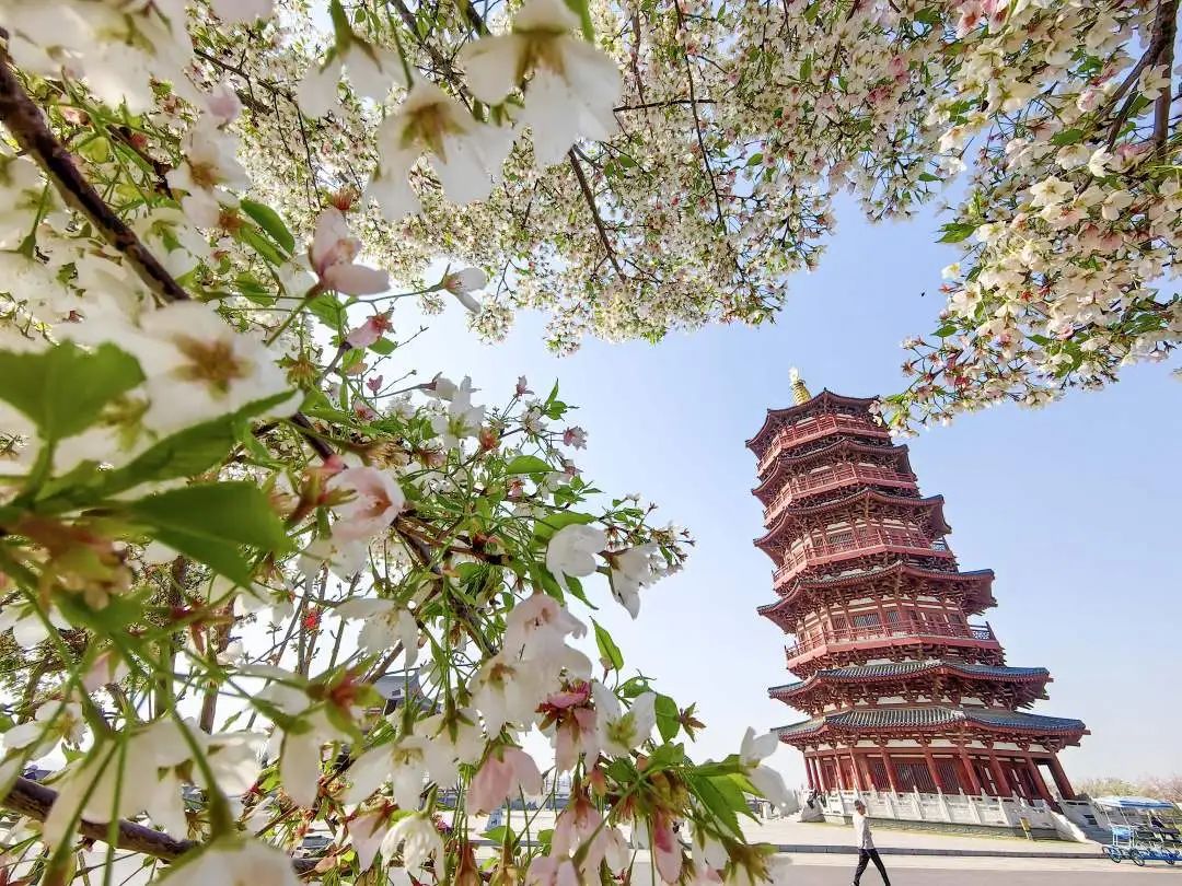 3 月 26 日,河南省洛阳市隋唐大运河文化公园樱花绽放,吸引市民前来拍照打卡。张怡熙摄(中经视觉)